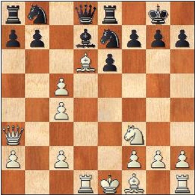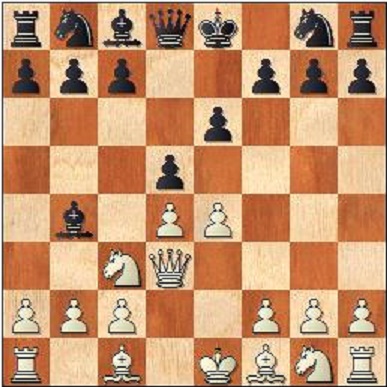 4…dxe4 4…b6?? går inte på grund av 5.Qb5+ Nc6 6.Qxc6+ Bd7 7.Qb7 med pjäsvinst. 5.Qxe4 Nf6 6.Qh4 c5 Logiskt men här finns även de intressanta alternativen 6…Nd5 7.Qxd8+ (7.Bg5!?) Kxd8 8.Bd2 eller 6…Qd5!?. 7.dxc5 Bxc3+ 8.bxc3 Qa5 9.Qb4 Qc7 10.Nf3