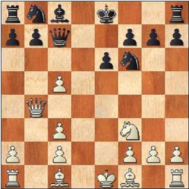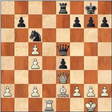 10…0-0?? Det var inte bara i World Cup 2015 som nyligen avslutades där obegripliga feldrag gjordes utan det sker även här. Normalt är 10…Nc6 eller 10…e5. I presskonferensen var Dzagnidze dock inne på att spela det sämre 10…Nbd7. 11.Bf4 Qd8 Dzagnidze hade inte missat det elfte draget utan helt enkelt planerat 11…e5 12.Bxe5 Re8 när hon till sin förfäran upptäckte det dräpande 13.0-0-0. Det blir ju plaskmatt efter alla slag på e5. 12.Rd1 Nd5 13.Qa3 Bd7 14.Bd6 Re8 15.c4 Ne7