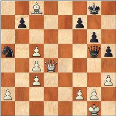 37.Bxb7! Såklart. 37…Nxb7 38.c6 Qe7 39.cxb7 Qxb7 40.a4 Qb1+ 41.Kh2 Qb8+ 42.g3 Qc7 43.h4 Qc6 44.a5 Qa4 45.Qd5 Qc2 46.Kg2 Qa2 47.Qa8+ Kg7 48.a6 Qxc4 49.Qb7 1-0